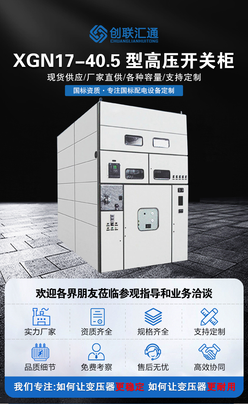 1.XGN17-40.5箱型金屬封閉開關(guān)設(shè)備系三相交流50Hz單母線及單母線帶旁路系統(tǒng)的戶內(nèi)成套裝置,作為接受和分配35kV網(wǎng)絡(luò)電能之用,并具有對電路進行控制、保護和監(jiān)測之功能.除廣泛應(yīng)用于-般電力系統(tǒng)外,還用于具有頻繁操作的電力線路中。
