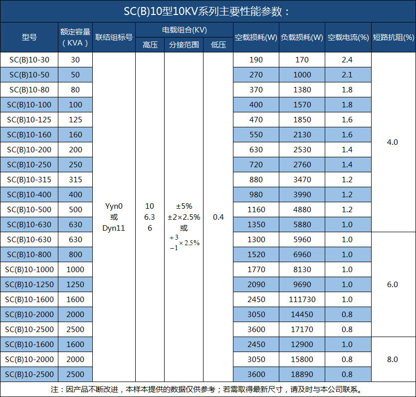SCB10-250kva干式變壓器采用環(huán)氧樹脂澆注三相干式變壓器具有安全,阻燃防火,無污染,可直接安裝在負(fù)荷中心。SCB10-250kva干式變壓器產(chǎn)品具有顯著的“三高三低”優(yōu)點(diǎn),即高機(jī)械強(qiáng)度、高電氣強(qiáng)度、高耐熱強(qiáng)度和低損耗、低噪聲、低局放。SCB10-250kva干式變壓器是新一代城市電網(wǎng)改造的環(huán)保產(chǎn)品,是當(dāng)前變壓器市場(chǎng)的主流產(chǎn)品。免維護(hù)、安裝簡(jiǎn)便。防潮性能好,停運(yùn)后不經(jīng)預(yù)干燥即可投入運(yùn)行。自己備有完善的溫度保護(hù)控制系統(tǒng),為變壓器安全運(yùn)行提供可靠保障。該產(chǎn)品的可靠性指標(biāo)已經(jīng)達(dá)到內(nèi)先進(jìn)水平。