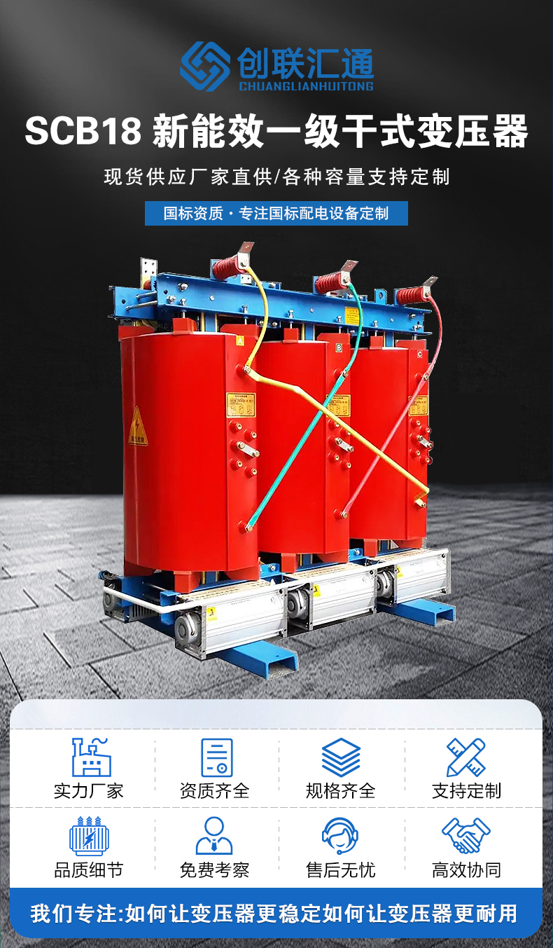 SCB18干式變壓器是符合《GB20052-2020電力變壓器能效限定值及能效等級國家標(biāo)準(zhǔn)》一級能效標(biāo)準(zhǔn)的新型號干式變壓器,是節(jié)能電力變壓器。SCB18變壓器相較SCB14變壓器空載損耗降低20%,負(fù)載損耗保持不變。