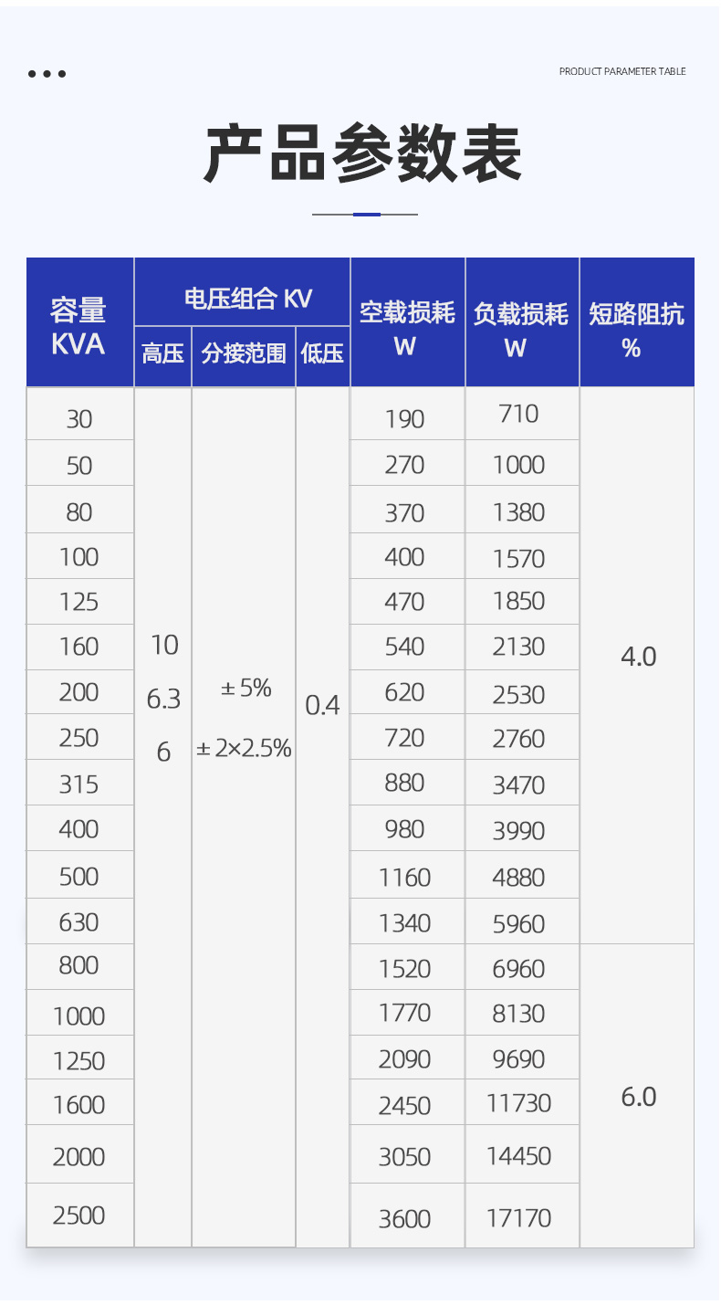 【額定容量】:10--2500KVA 【額定電壓】:6--35kv