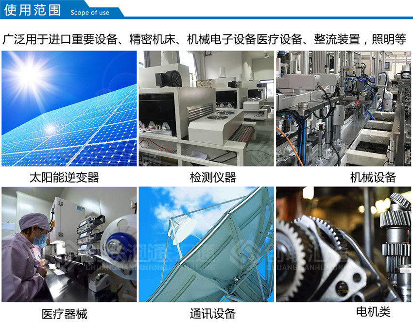該系列隔離變壓器廣泛用于地鐵、高層建筑、機場、車站、印刷、機床、碼頭、光伏發(fā)電設(shè)備,逆變器專用,工礦企業(yè)及隧道的輸配電及進(jìn)口設(shè)備的使用等場所